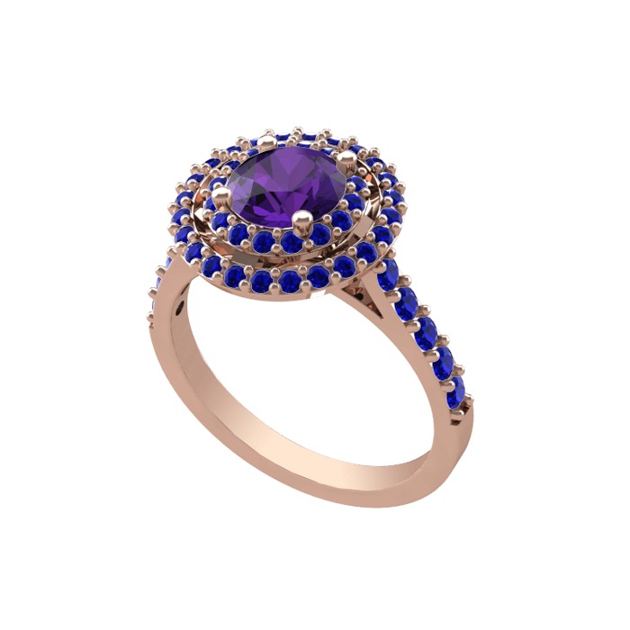 Ametist ve lab safir 14 ayar rose altın yüzük