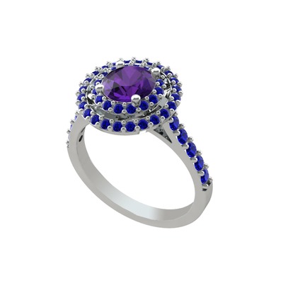 Ametist ve lab safir 8 ayar beyaz altın yüzük