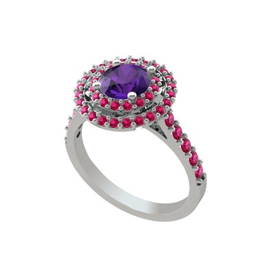 Ametist ve rodolit garnet 18 ayar beyaz altın yüzük