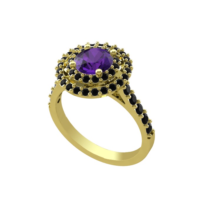 Ametist ve siyah zirkon 14 ayar altın yüzük