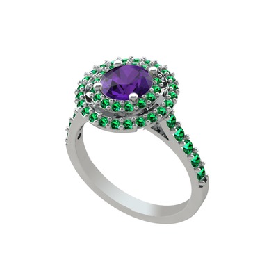 Ametist ve yeşil kuvars 925 ayar gümüş yüzük
