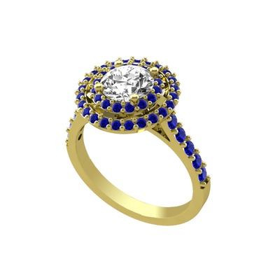 Beyaz zirkon ve lab safir 18 ayar altın yüzük