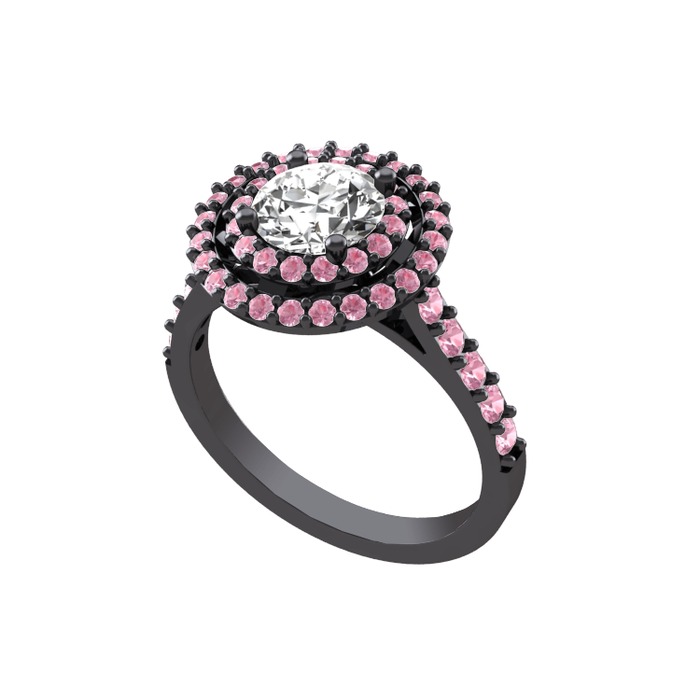 Beyaz zirkon ve pembe kuvars 925 ayar siyah rodyum kaplama gümüş yüzük
