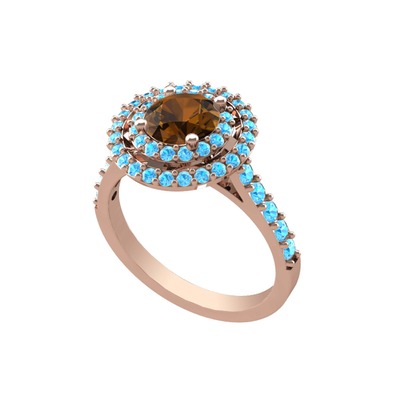 Dumanlı kuvars ve akuamarin 8 ayar rose altın yüzük