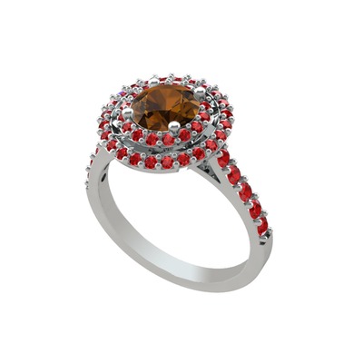 Dumanlı kuvars ve garnet 8 ayar beyaz altın yüzük