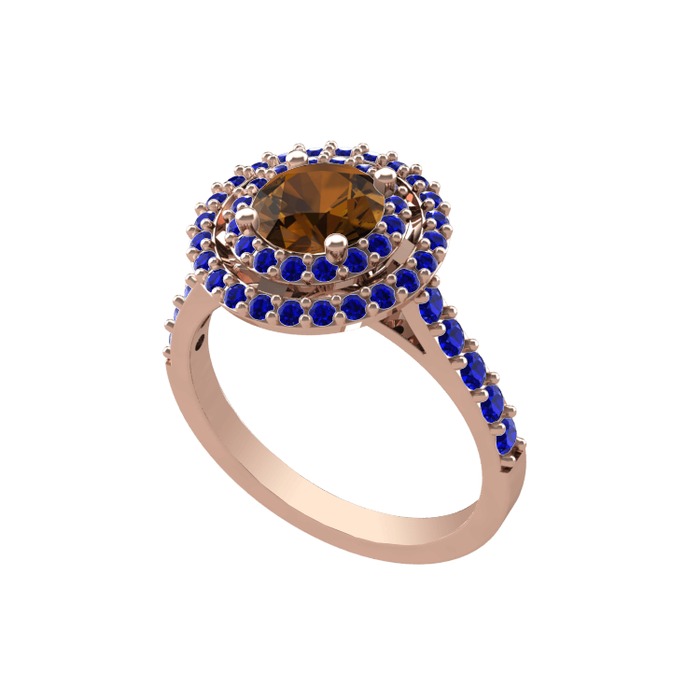 Dumanlı kuvars ve lab safir 14 ayar rose altın yüzük