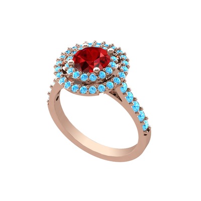 Garnet ve akuamarin 8 ayar rose altın yüzük