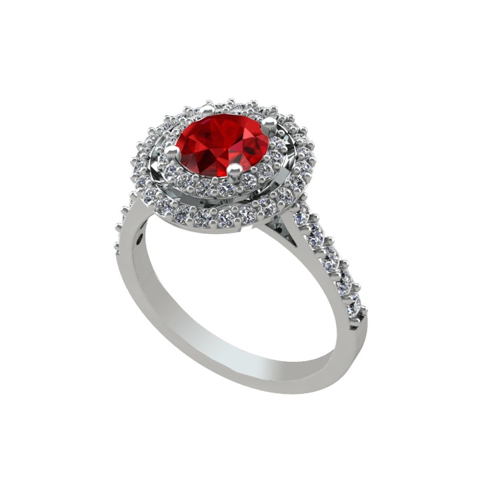 Garnet ve beyaz zirkon 18 ayar beyaz altın yüzük
