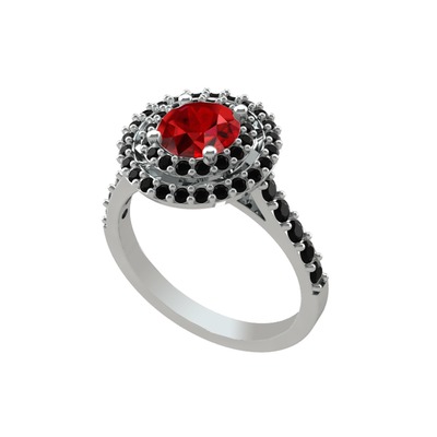 Garnet ve siyah zirkon 18 ayar beyaz altın yüzük