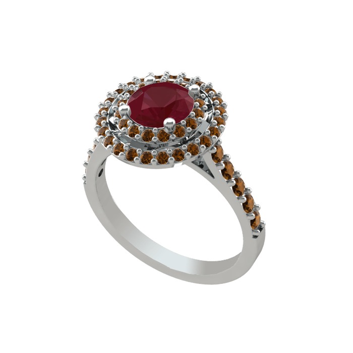 Kök yakut ve dumanlı kuvars 925 ayar gümüş yüzük