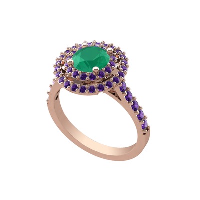 Kök zümrüt ve ametist 18 ayar rose altın yüzük