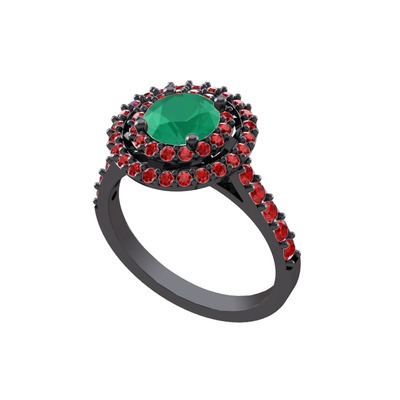 Kök zümrüt ve garnet 925 ayar siyah rodyum kaplama gümüş yüzük