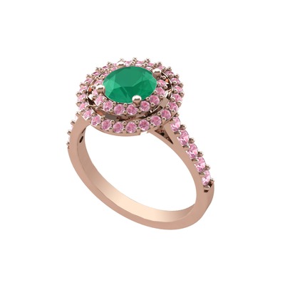 Kök zümrüt ve pembe kuvars 18 ayar rose altın yüzük