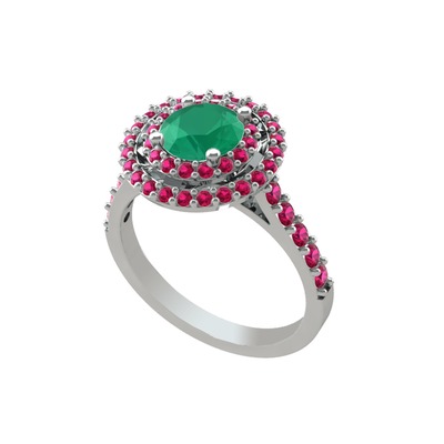 Kök zümrüt ve rodolit garnet 8 ayar beyaz altın yüzük