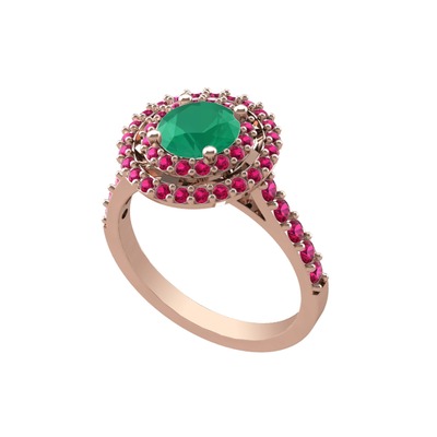 Kök zümrüt ve rodolit garnet 8 ayar rose altın yüzük