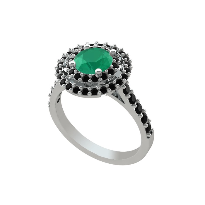 Kök zümrüt ve siyah zirkon 18 ayar beyaz altın yüzük