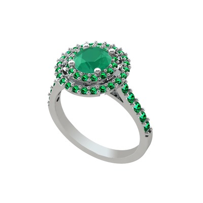 Kök zümrüt ve yeşil kuvars 14 ayar beyaz altın yüzük