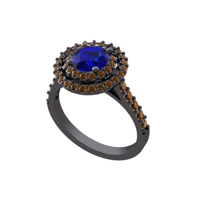 Lab safir ve dumanlı kuvars 925 ayar siyah rodyum kaplama gümüş yüzük