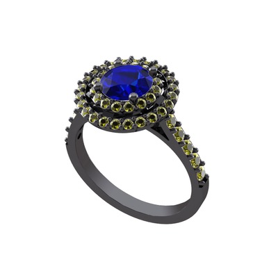 Lab safir ve peridot 925 ayar siyah rodyum kaplama gümüş yüzük