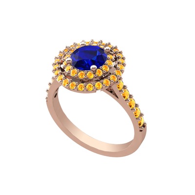 Lab safir ve sitrin 14 ayar rose altın yüzük