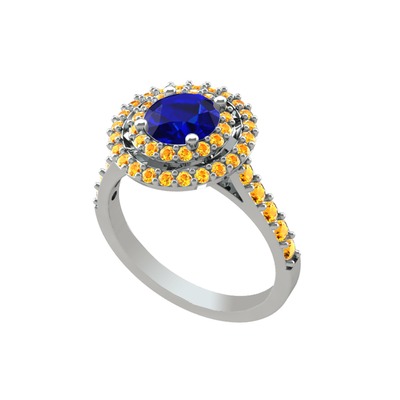 Lab safir ve sitrin 18 ayar beyaz altın yüzük