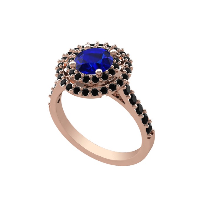 Lab safir ve siyah zirkon 18 ayar rose altın yüzük