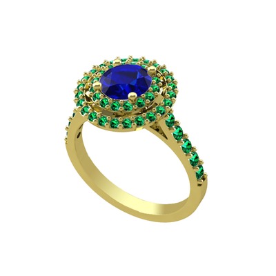 Lab safir ve yeşil kuvars 925 ayar altın kaplama gümüş yüzük