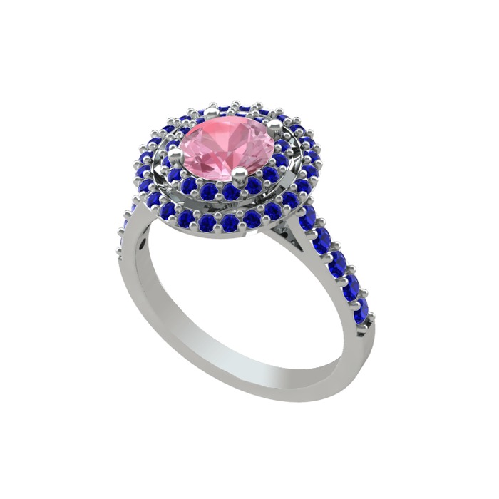 Pembe kuvars ve lab safir 14 ayar beyaz altın yüzük