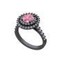 Pembe kuvars ve pırlanta 925 ayar siyah rodyum kaplama gümüş yüzük (1.2 karat)