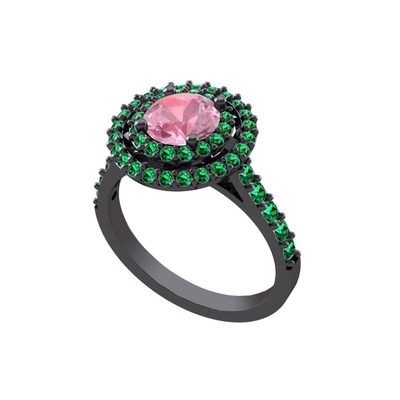 Pembe kuvars ve yeşil kuvars 925 ayar siyah rodyum kaplama gümüş yüzük