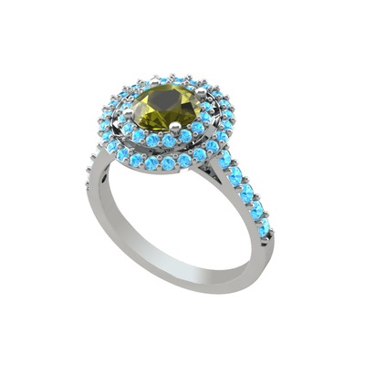 Peridot ve akuamarin 8 ayar beyaz altın yüzük
