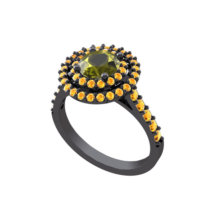 Peridot ve sitrin 925 ayar siyah rodyum kaplama gümüş yüzük