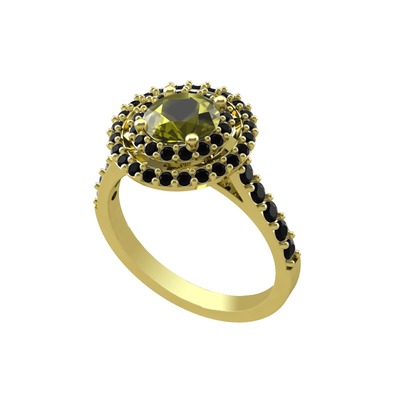 Peridot ve siyah zirkon 925 ayar altın kaplama gümüş yüzük