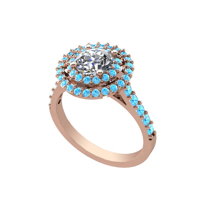 Pırlanta ve akuamarin 925 ayar rose altın kaplama gümüş yüzük (0.92 karat)