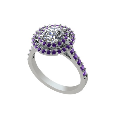 Pırlanta ve ametist 18 ayar beyaz altın yüzük (0.92 karat)