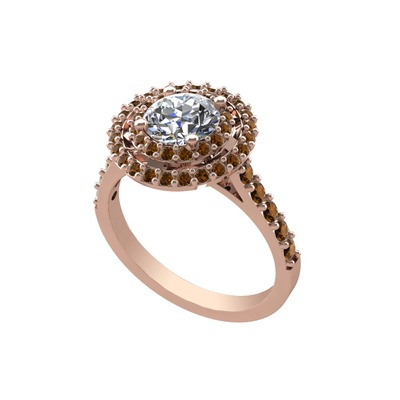 Pırlanta ve dumanlı kuvars 8 ayar rose altın yüzük (0.92 karat)