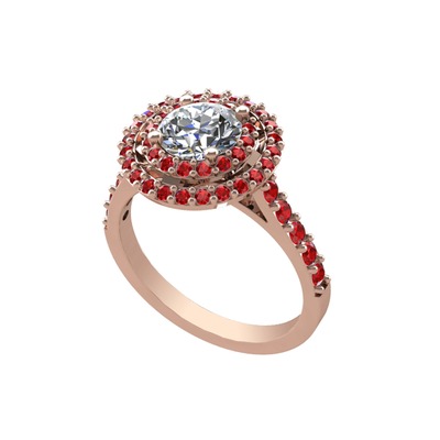 Pırlanta ve garnet 8 ayar rose altın yüzük (0.92 karat)
