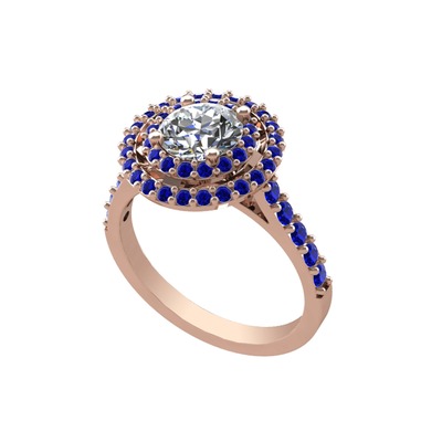 Pırlanta ve lab safir 14 ayar rose altın yüzük (0.92 karat)