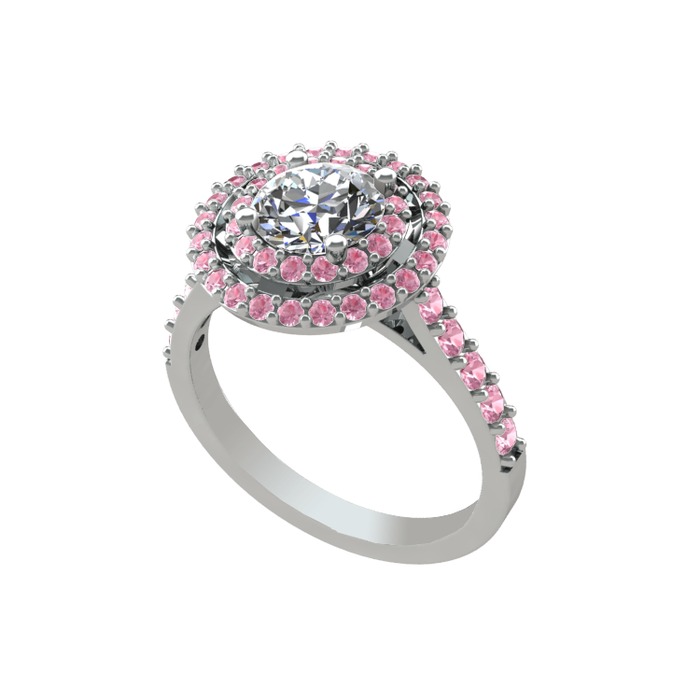 Pırlanta ve pembe kuvars 8 ayar beyaz altın yüzük (0.92 karat)