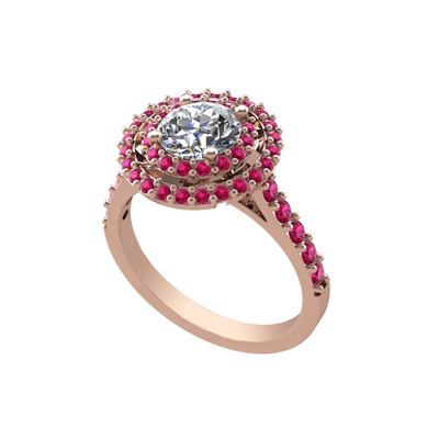Pırlanta ve rodolit garnet 925 ayar rose altın kaplama gümüş yüzük (0.92 karat)