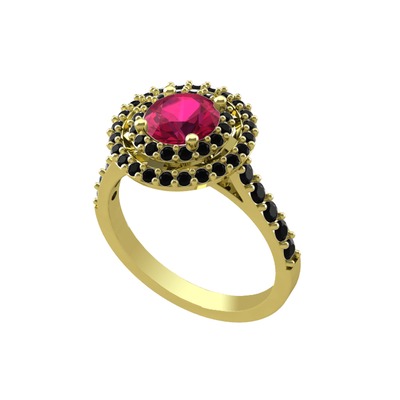 Rodolit garnet ve siyah zirkon 18 ayar altın yüzük