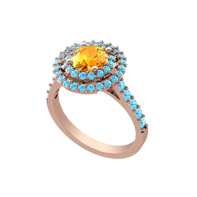Sitrin ve akuamarin 18 ayar rose altın yüzük