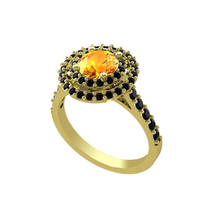 Sitrin ve siyah zirkon 8 ayar altın yüzük