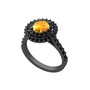 Sitrin ve siyah zirkon 925 ayar siyah rodyum kaplama gümüş yüzük