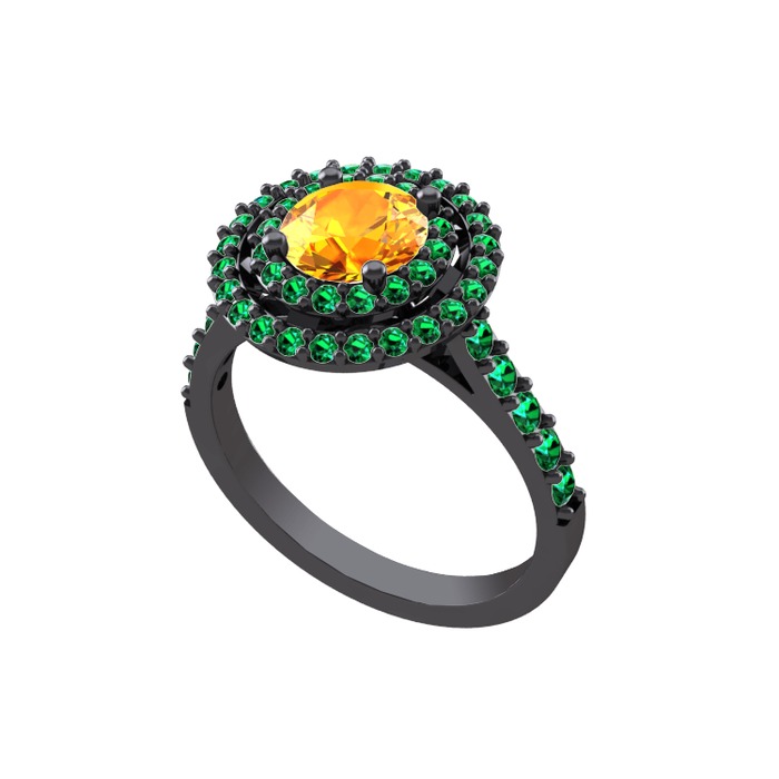 Sitrin ve yeşil kuvars 925 ayar siyah rodyum kaplama gümüş yüzük