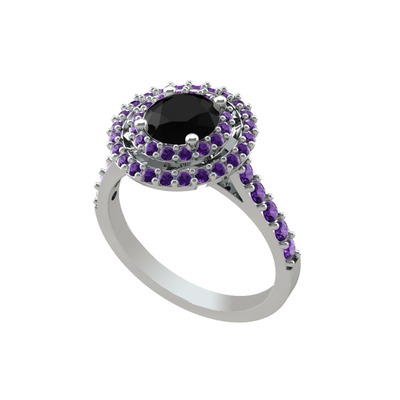 Siyah zirkon ve ametist 925 ayar gümüş yüzük
