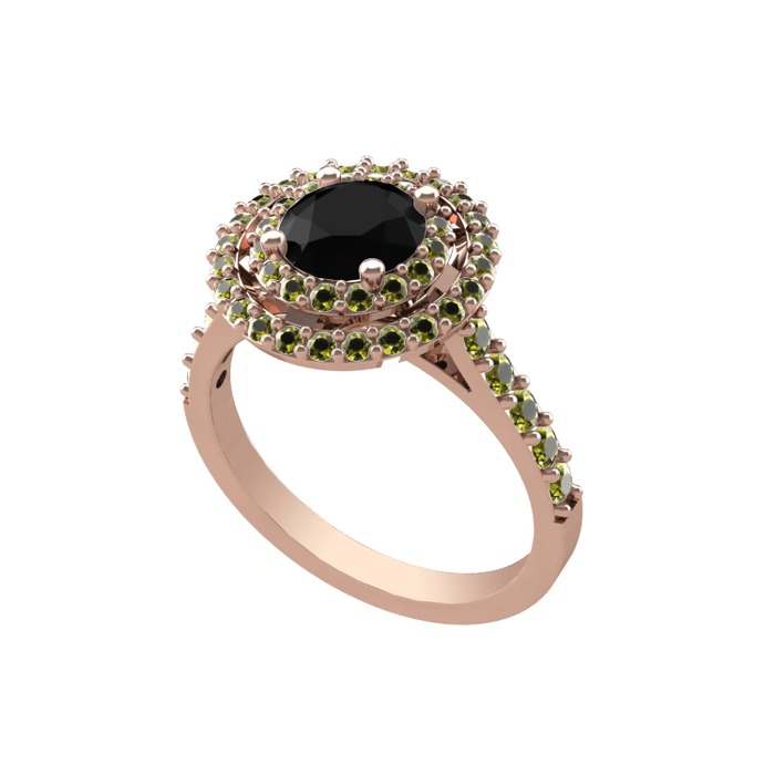 Siyah zirkon ve peridot 14 ayar rose altın yüzük