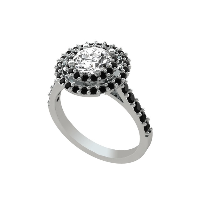 Swarovski ve siyah zirkon 14 ayar beyaz altın yüzük