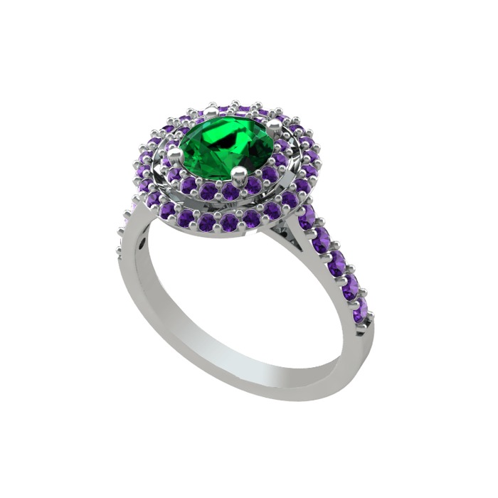 Yeşil kuvars ve ametist 14 ayar beyaz altın yüzük