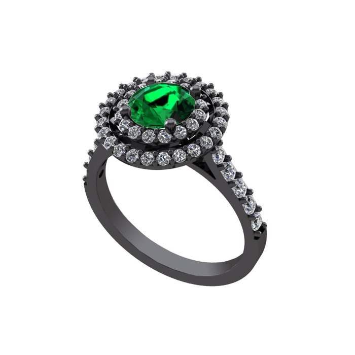 Yeşil kuvars ve beyaz zirkon 925 ayar siyah rodyum kaplama gümüş yüzük